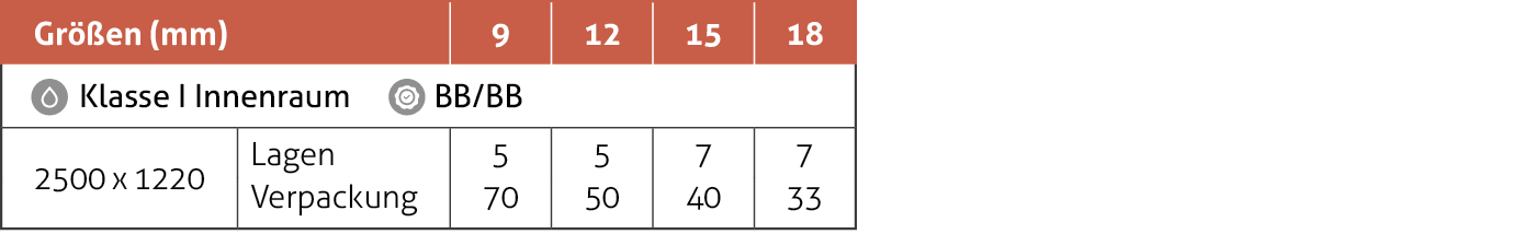Diese Platte eignet sich perfekt für Innenanwendungen, die ein stabiles, widerstandsfähiges und leicht zu bearbeitendes Material erfordern – sowohl für dekorative Anwendungen im natürlichen Zustand als auch für hochwertige Laminierungen mit hellen Furnieren oder HPL.