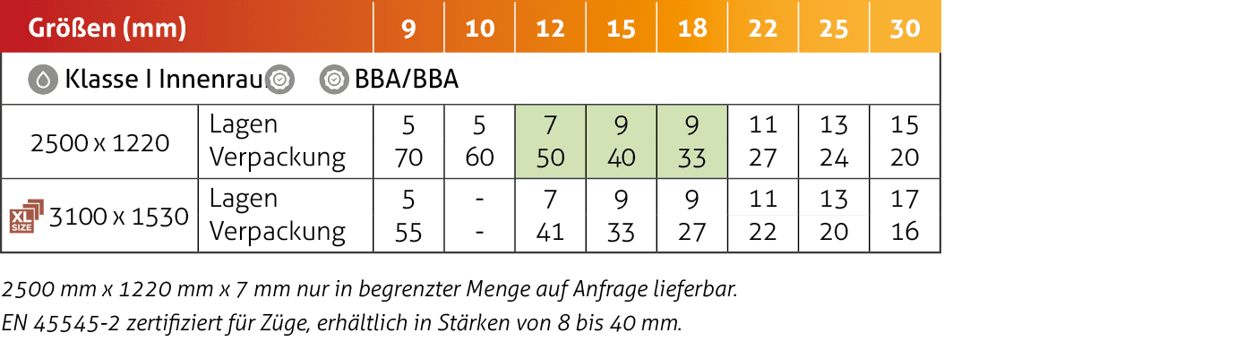 Schwer entflammbares Sperrholz für den Innenausbau, modifiziert durch eine innovative Behandlung, die dem gesamten Plattenkern außergewöhnliche Feuerbeständigkeit verleiht – auch nach dem Schleifen oder Bearbeiten.