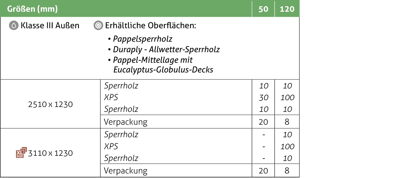 Die Kombination des Garnica-Sperrholzes aus nachhaltigen Plantagen mit dem leichten Werkstoff XPS (extrudiertes Polystyrol) verbessert die mechanischen Eigenschaften. Das Ergebnis ist ein einzigartiges, leichtgewichtiges, lasttragefähiges Produkt mit hoher Wärme- und Schallisolierung, das außerdem umweltfreundlich ist.