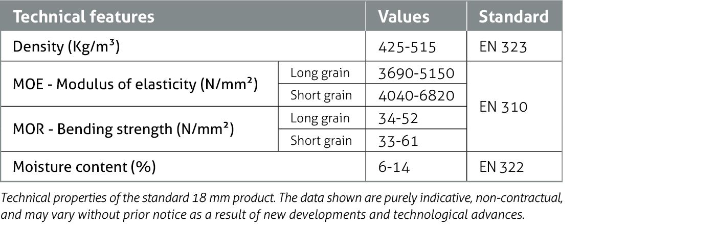 Its composition based on European poplar wood sourced from sustainable fast-growing plantations makes the panel highly stable, smooth, lightweight and easily machinable.