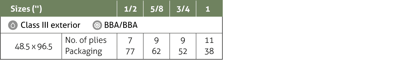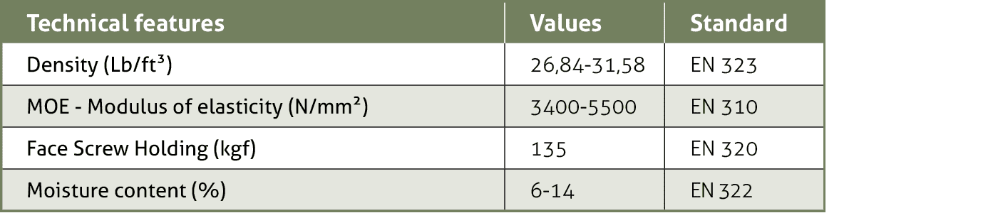 Modified core through an innovative treatment that that provide the panel with extraordinary 100% durability and immunity to attacks from fungi and xylophages, even after sanding or machining, with a 15-year guarantee.