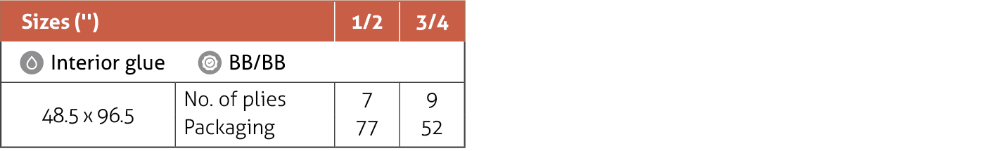 (*Except for thicknesses manufactured with three plies, where only the face is repaired.)