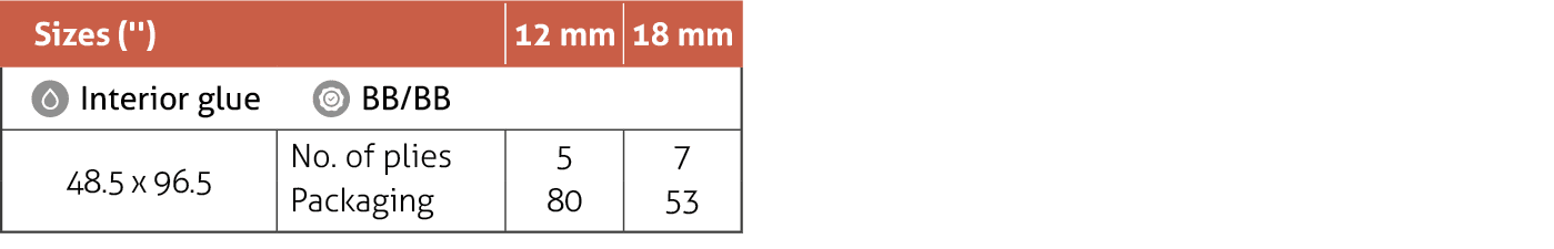 The species combination provides a stable and uniform core, ideal for interior applications requiring a lightweight panel that is easy to machine and has good surface quality.