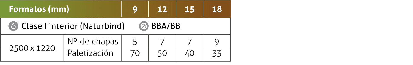 Encolado: Clase I (interior) Naturbind según la norma EN 636