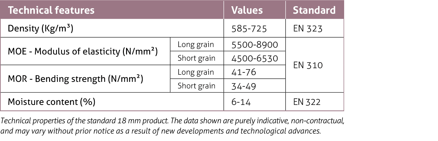 Contrachapado laminado multichapa de usos múltiples, con un núcleo combinado que aúna la ligereza del chopo y la resistencia del Eucalyptus globulus, ambas especies de plantación europea.