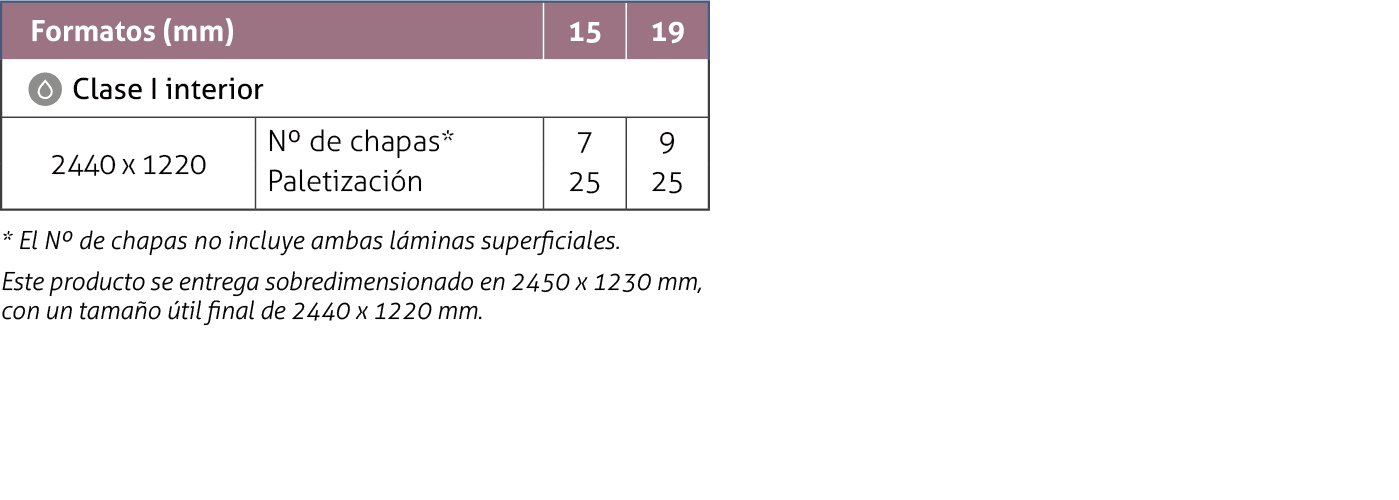 Encolado: Clase I (interior) y clase III (exterior) de acuerdo a la norma EN 636