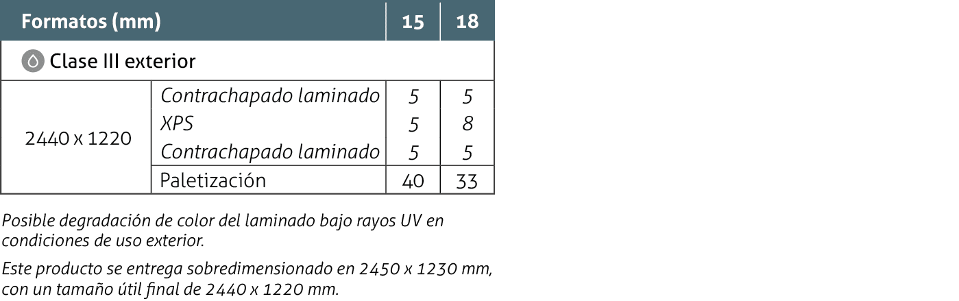 Encolado: Clase III (exterior) de acuerdo a la norma EN 636